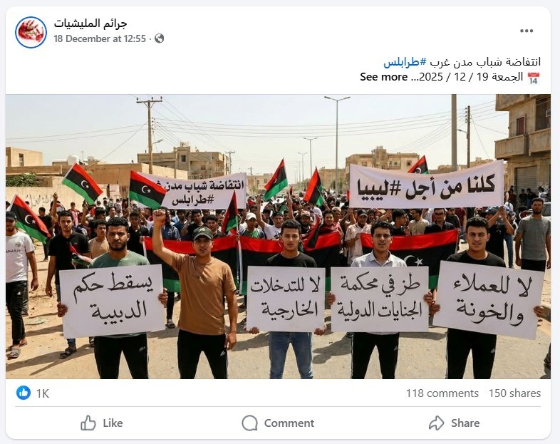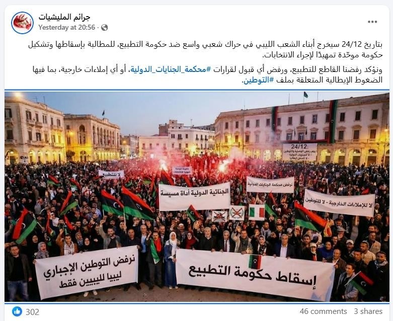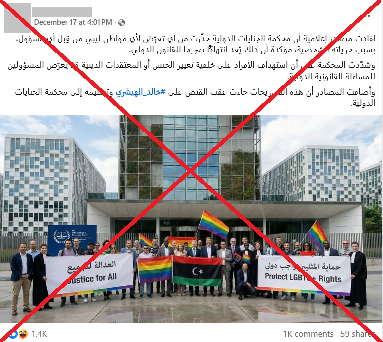 قمنا برصد الادعاء لأول مرة من إحدى الحسابات على منصة فيسبوك، وكان نص الادعاء كالاتي: "#عاجل: محكمة الجنايات الدولية تحذر من أي تعرض لأي مواطن ليبي بذريعة الحريات الشخصية، ومشددة على أن استهداف الأفراد بسبب تغيير الجنس أو المعتقدات قد يعرض المسؤولين للمساءلة، وجاءت هذه التصريحات عقب القبض على خالد الهيشري وتسليمه للمحكمة."