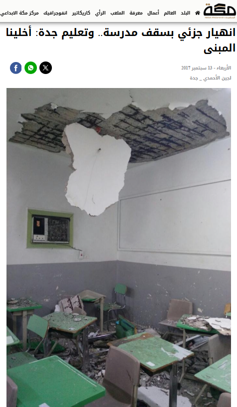 كما قادنا البحث بالكلمات المفتاحية إلى مقال لصحيفة مكة السعودية بتاريخ 13 سبتمبر 2017، يفيد بأن الصورة تعود لحادثة فوجئ بها قائد ومعلمو مدرسة الإمام النسائي المتوسطة بحي السليمانية في جدة، وهذا التأكيد الجغرافي والمكاني ينفي بشكل قاطع ارتباط الصورة بمدينة زليتن الليبية.