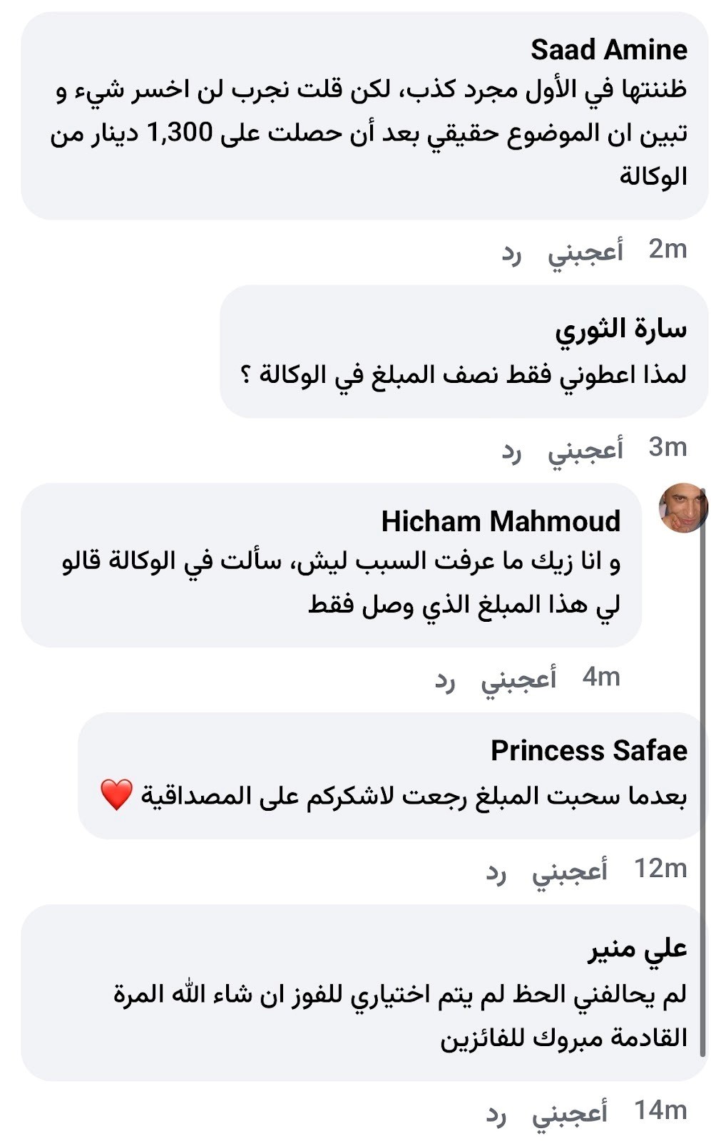 لقطة شاشة تظهر تعليقات احتيالية على موقع الادعاء