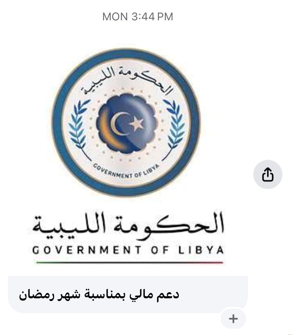 "الحكومة الليبية دعم مالي بمناسبة شهر رمضان"