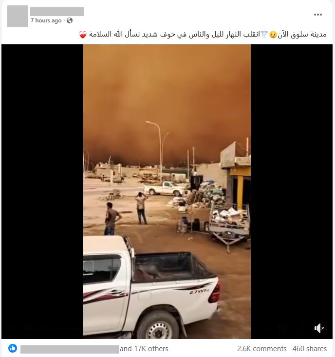 يذكر بأن الادعاء المتداول يأتي في سياق عاصفة رملية اعلنت عليها جهات موثوقة مثل المركز الوطني للأرصاد الجوية ومؤسسة رؤية لعلوم الفضاء وتطبيقاته، مما استدعى الحكومة الليبية لتشكيل لجنة طوارئ واستجابة سريعة لمناطق الجنوب والشرق الليبي:
