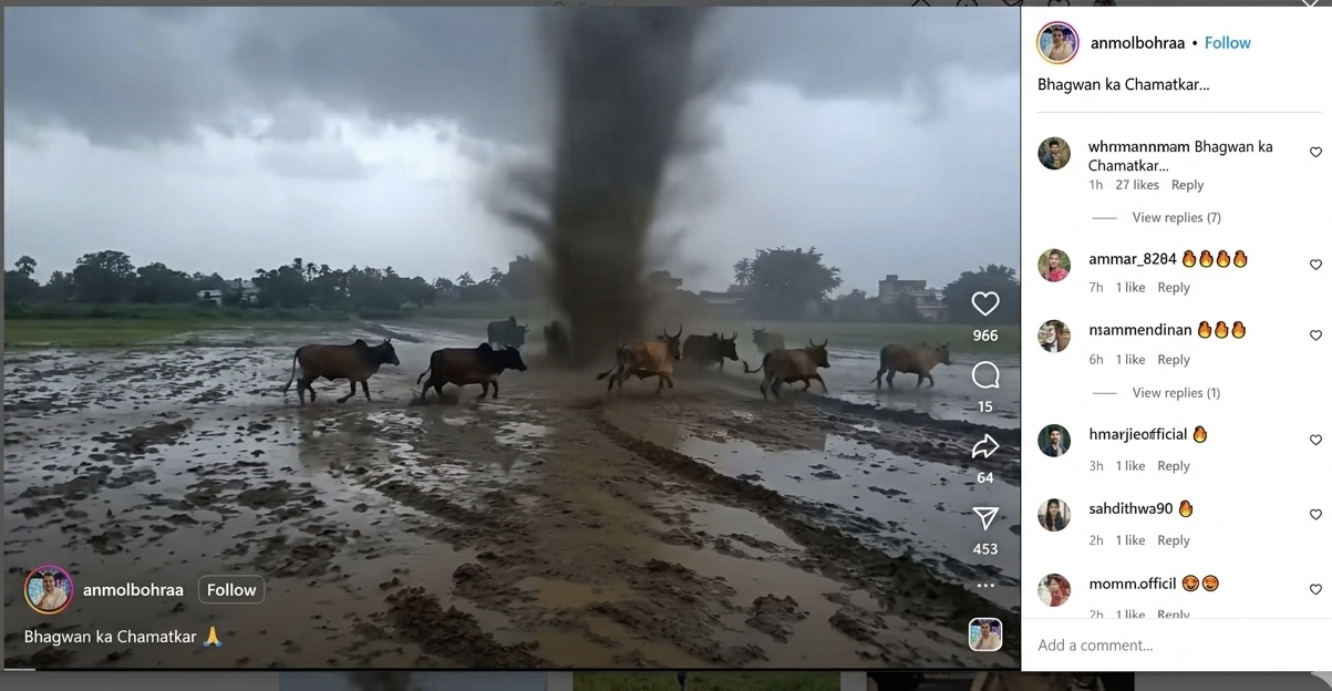 وعبر البحث بالكلمات المفتاحية؛ ظهر لنا الفيديو الأصلي وقد نُشر على حساب شخص يدعى Anmol Bohra عبر تطبيق انستجرام في 13 أبريل 2026 م، وهو صانع محتوى رقمي من الهند يستخدم منصته في نشر أعماله الفنية، ولاقت عديد أعماله رواجا واسعا فاقت ملايين المشاهدات.