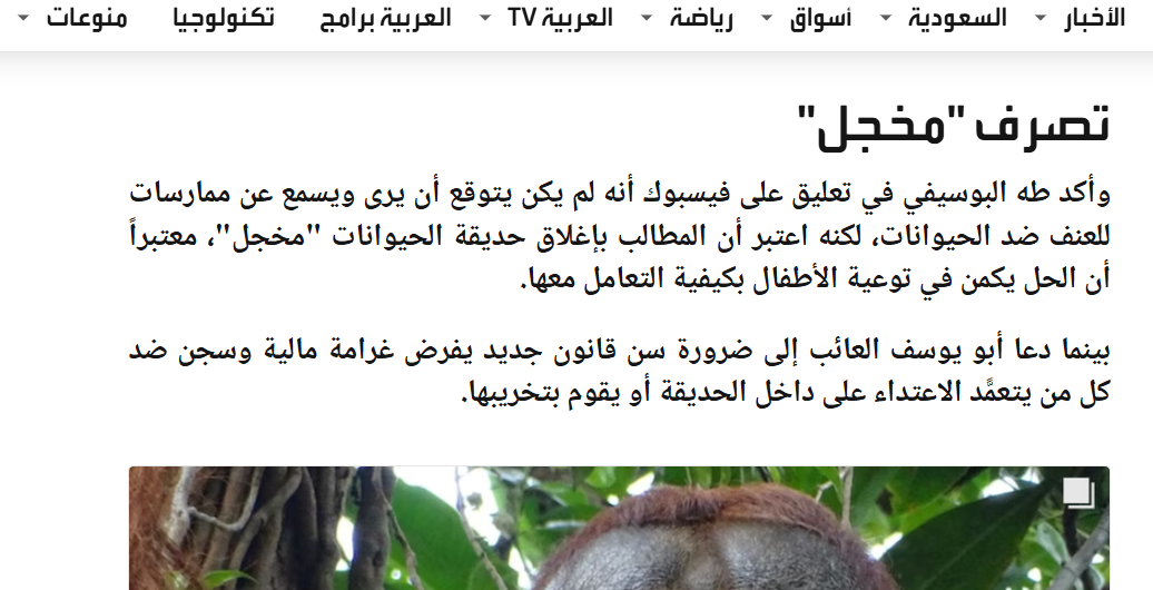 كما قاد البحث بالكلمات المفتاحية إلى مقال منشور على موقع قناة العربية بتاريخ 28 مارس 2026، تناول تفاعل المستخدمين مع واقعة الاعتداء على الحيوانات داخل حديقة بوسليم، حيث تضمّن أحد التعليقات دعوة إلى “سن قانون جديد يفرض غرامة مالية وسجن ضد كل من يتعمّد الاعتداء على الحيوانات أو تخريب الحديقة”. مما قد يرجّح أن الادعاء المتداول قد نشأ من هذا الطرح أو مطالبات مشابهة، قبل أن يُعاد نشره لاحقًا بصيغة توحي بوجود قانون قائم بالفعل.