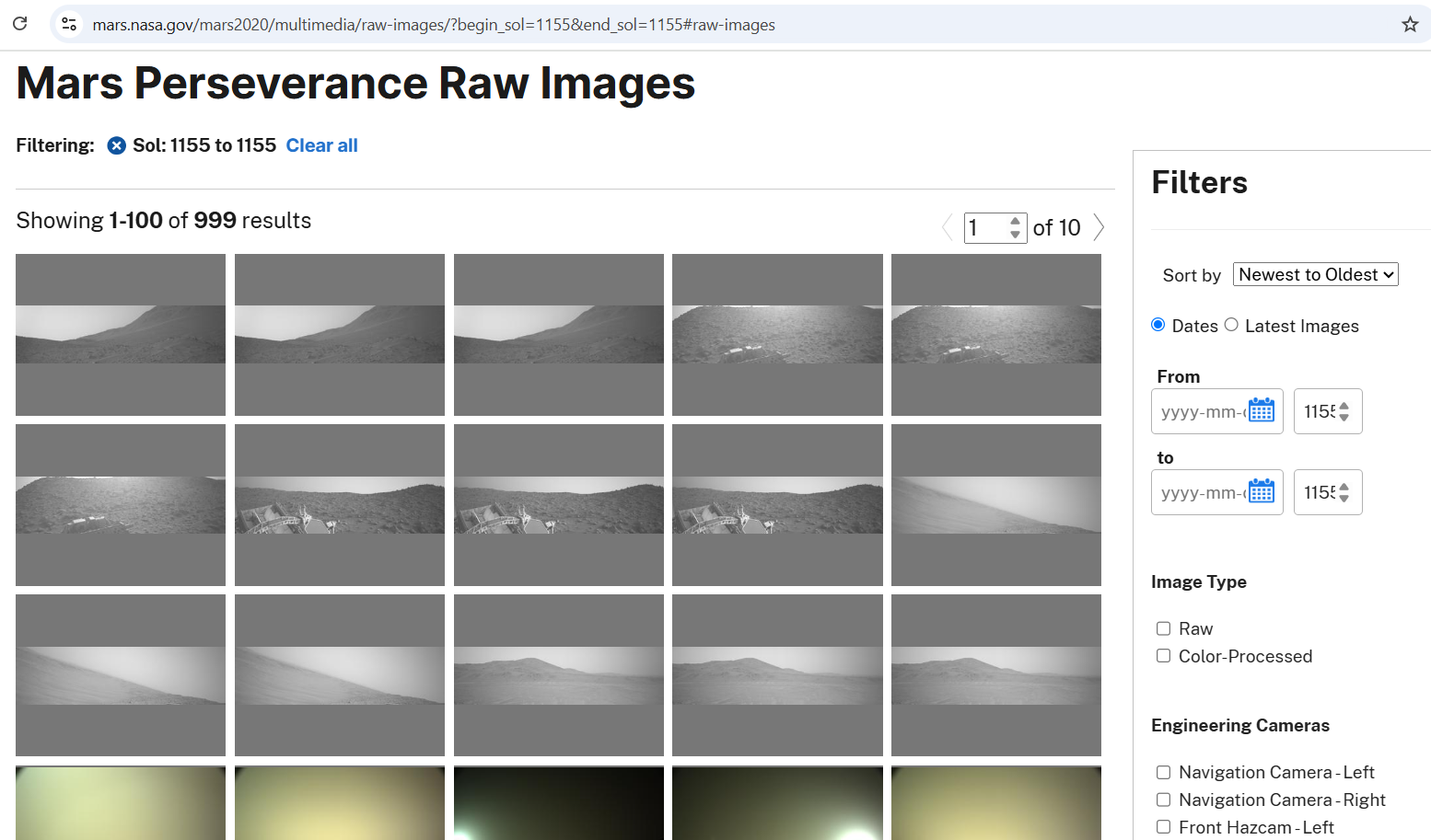 لقطة شاشة للصور الخام على موقع ناسا