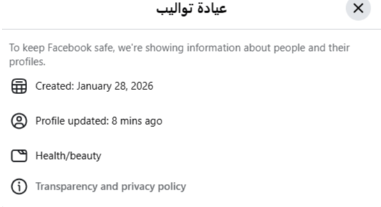 اتضح لأنير أن هذا الادعاء زائف؛ إذ كشف تدقيق فريقنا عن عدة مؤشرات تؤكد أن الصفحة منتحلة والمحتوى مضلل ولا يمثل الواقع وبمراجعة شفافية الصفحة اتضح أن الصفحة أنشئت في 28 يناير 2026 أي بتاريخ الحادثة وانتشار المقاطع، مما يدل على أن الصفحة أُسست خصيصاً لتأجيج الرأي العام:
