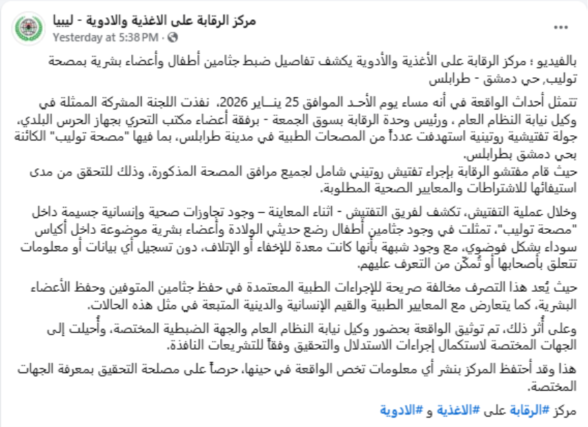 ويأتي تداول هذا الادعاء تزامناً مع مقاطع فيديو متداولة منسوبة لمصحة توليب تظهر جثث أطفال حديثي الولادة وأعضاء بشرية مجمدة.